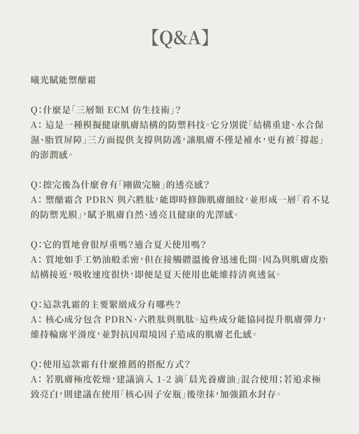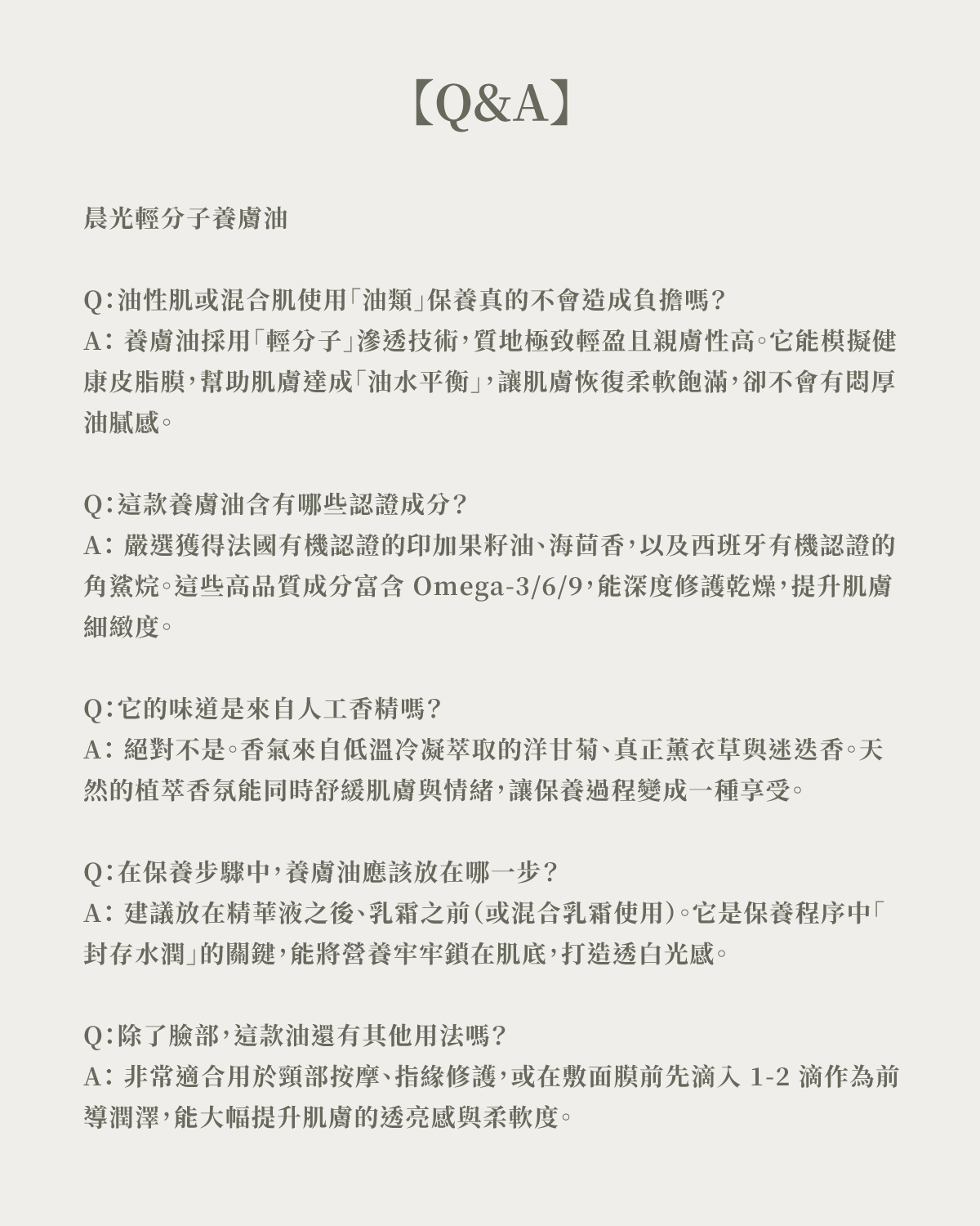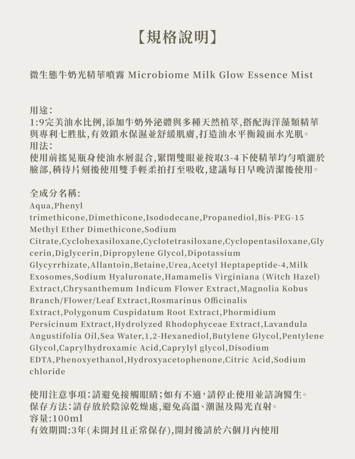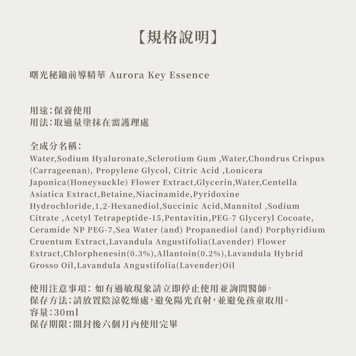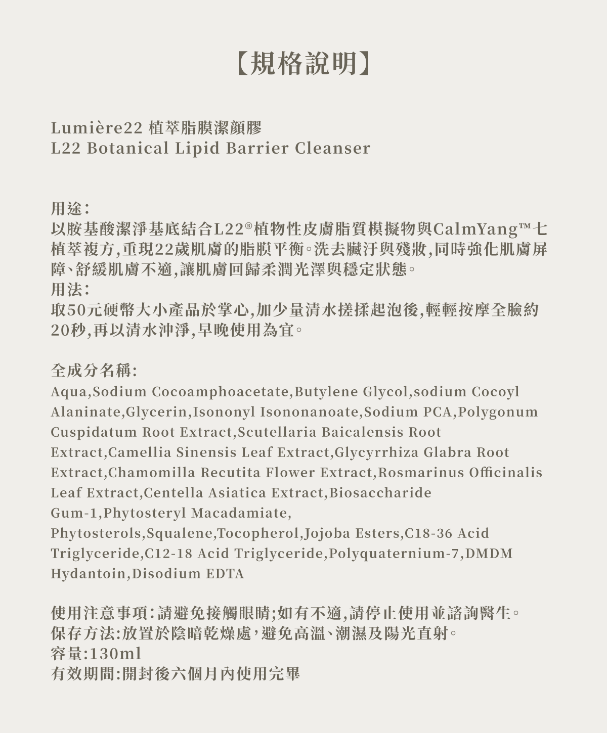 品項:L22植萃脂膜潔顏膠x1、微生態牛奶光噴霧x1、曙光秘鑰前導精華x1、晨光輕分子養膚油x1、曦光賦能禦醣霜x1